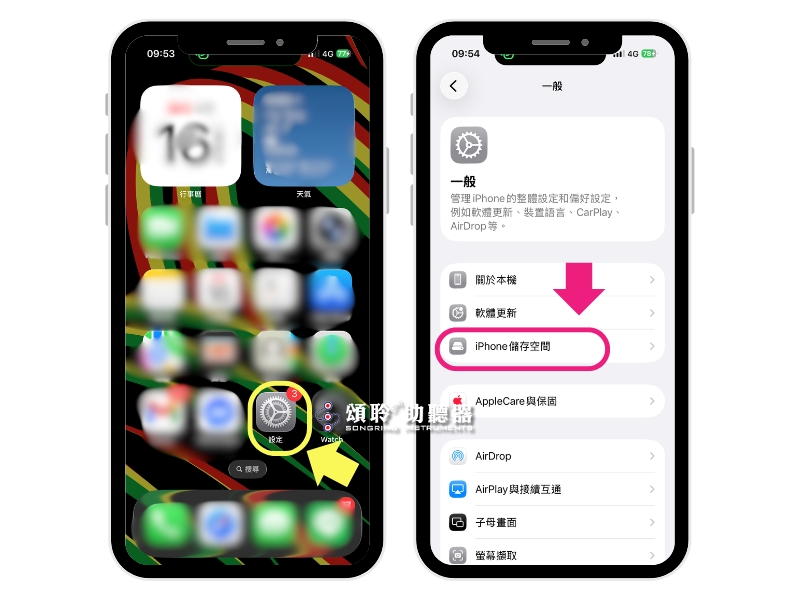 開啟手機的「設定」,點選「一般」⮕「iPhone 儲存空間」。這裡會列出所有已下載的 App 清單及占用容量。