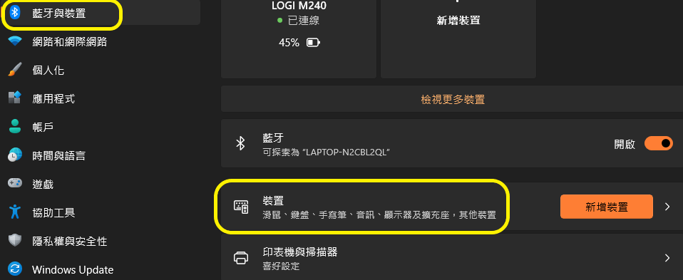 3. 最後在 [ 藍牙 & 裝置 > 裝置] 視窗中,選擇[ 新增裝置 ],即可連線助聽器