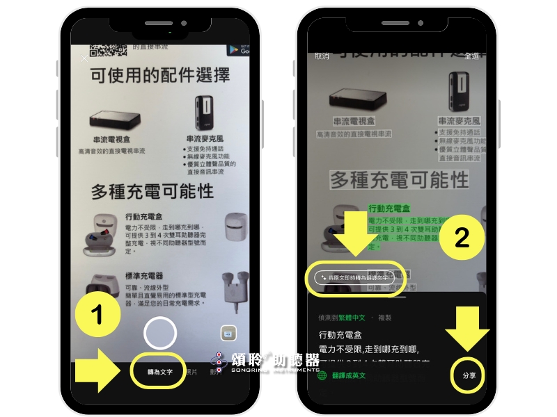 3. 等待幾秒鐘後,畫面上的文字會呈現『綠色框框』,您可手動選擇要翻譯的文字區塊。