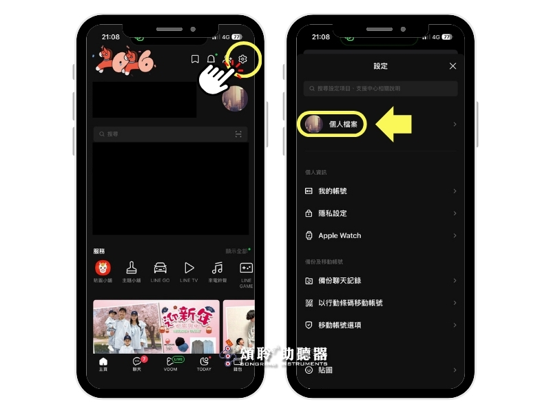 開啟設定:點擊 LINE 首頁右上角的設定 (「齒輪」圖示 )。