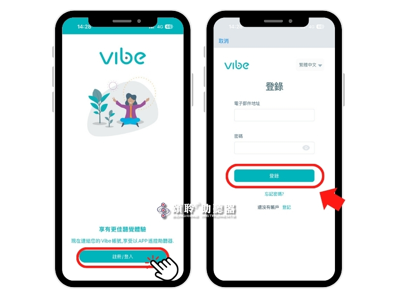 開啟Vibe App,點選「註冊/登入」,若您沒有申請過帳號,請註冊一個新的帳戶。