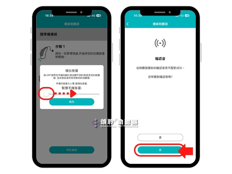 **Vibe App是透過聲音與助聽器連結並操控,如果手機音量過小可能導致設定失敗
