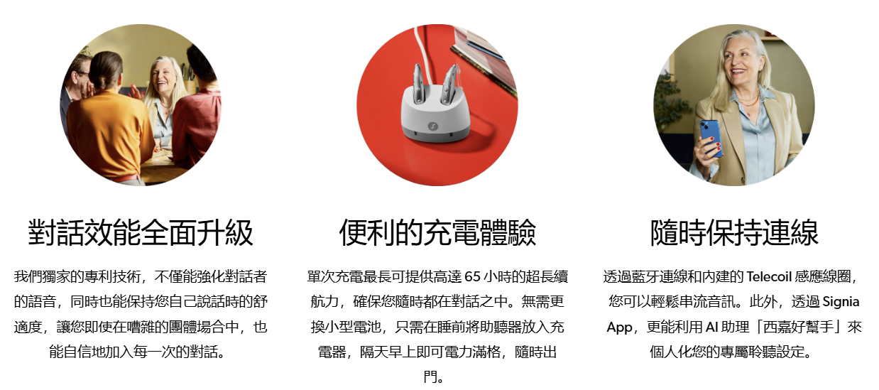 無論您需要的聽力輔助程度為何,所有人都能享有便利的充電功能與可靠的全天候電力。